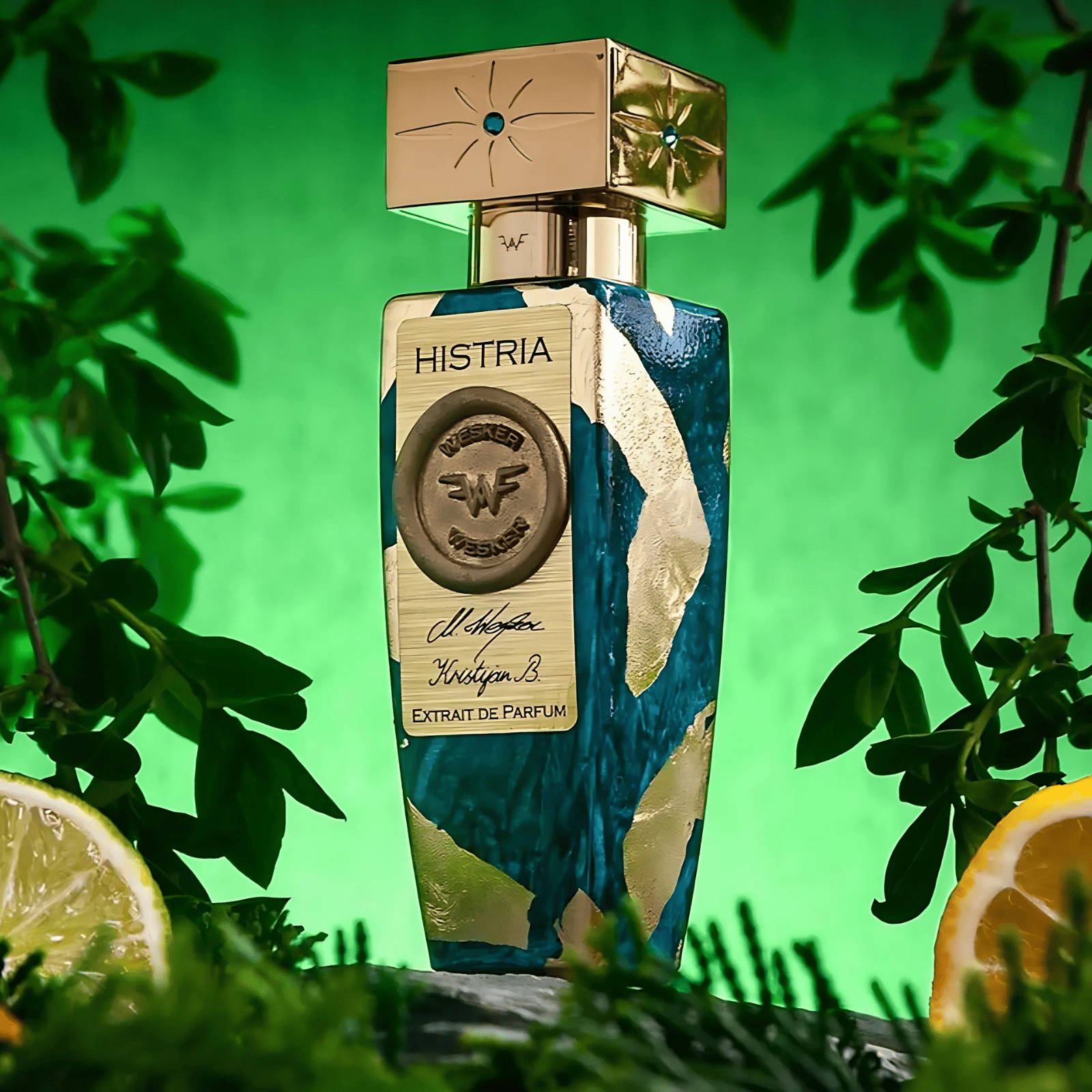 Wesker Histria Extrait De Parfum reveals its character in a graceful progression of layers that evoke a walk through a sunlit forest. The fragrance begins with a burst of crisp, invigorating notes where pine needles blend seamlessly with red mandarin, sweet lemon, and bergamot.
